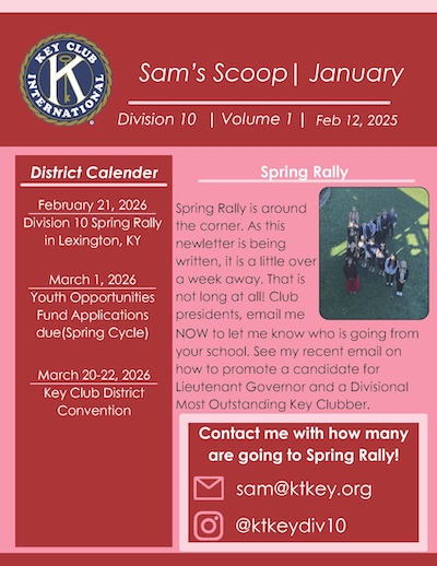 Division 10 | February 2026 Newsletter (9 downloads )Club Presidents, the timer is ticking! Message me NOW with the number from your club that will be attending!